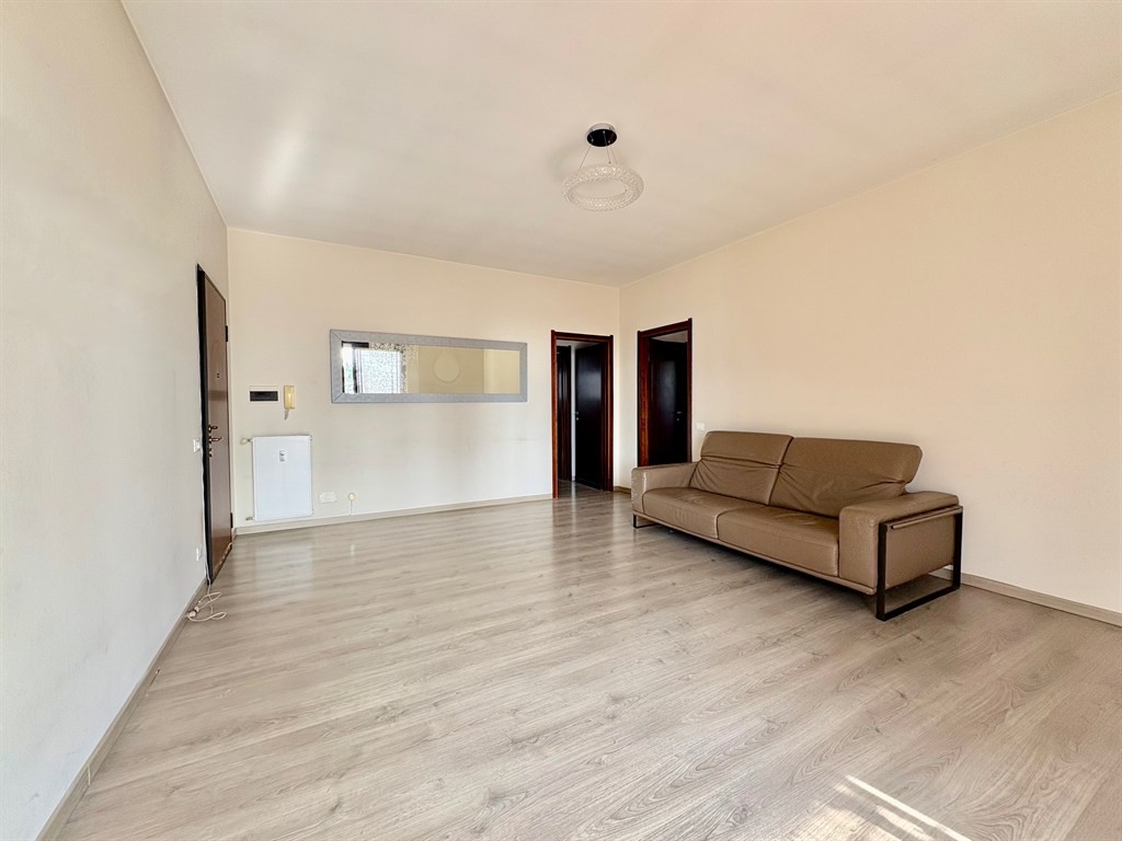 L’ingresso si apre direttamente su un ampio soggiorno, ben illuminato, affiancato da una cucina abitabile di generose dimensioni.