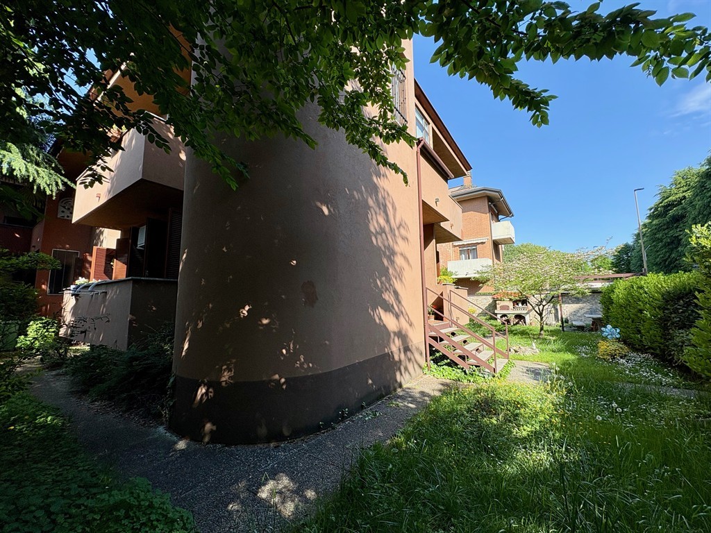Completa la proprietà un ampio giardino privato, al quale si accede solo dall'ingresso dell'appartamento, scendendo alcuni scalini. Essendo l'appartamento al primo piano, non ci sono uscite dirette ad esso dai singoli locali!